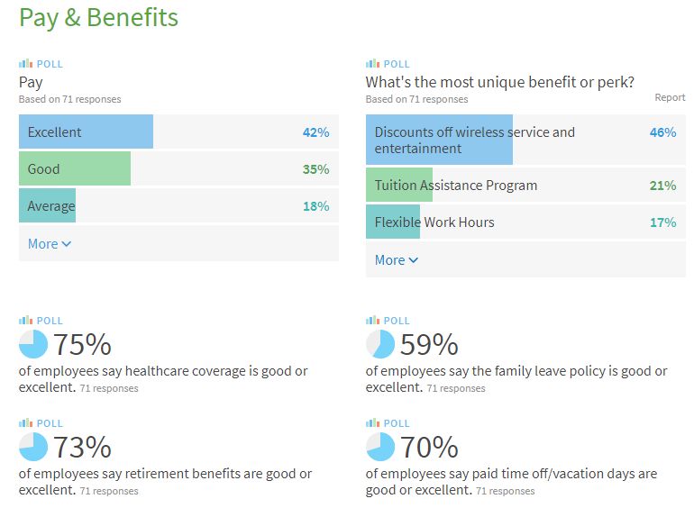 全球最大的求职网站之一Glassdoor曾公布一份研究报告,指出求职者最愿意为了工作而迁居的十个城市中,德州达拉斯和奥斯汀分别以2.9%排名第九,和2.3%排在十大城市的榜尾。 Niche 网站曾作出比较,以数千家公司的工资、福利、企业文化和员工评论等为基础数据,整合出了一份德州最受欢迎公司名单,正在找工作的你,可要仔细看好哦! AT&T- 地址:208 S. Akard St Dallas, TX 75202