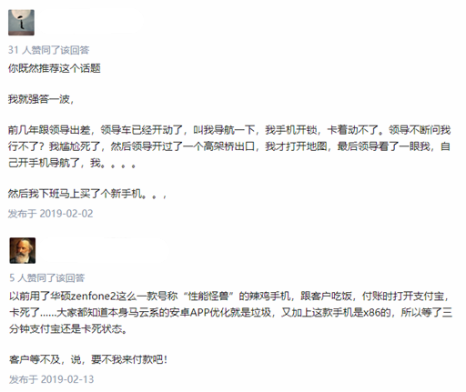 因手机卡顿而引发的“悲剧”,让人尴尬又抓狂。图/知乎截图