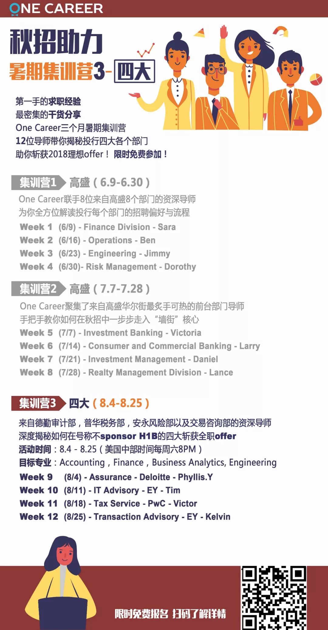 四大也将开放明年暑期实习和秋季全职的申请。我们邀请到来自德勤审计部,普华税务部,安永风险部以及交易咨询部的资深导师,告诉你如何在号称不sponsor H1B的四大会计事务所找到全职工作。