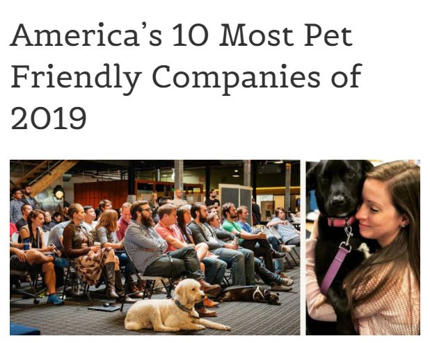 2019年全美10大宠物友好公司排名已火热出炉