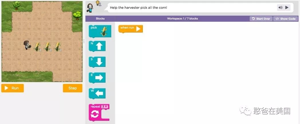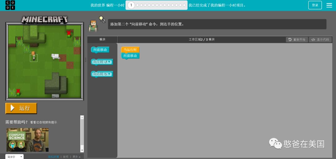 这个机构叫做CODE,当年奥巴马提出要将编程引入学校后,美国的教育就系统专门创建了一个教 K-12 孩子编程的课程,免费提供给学校和家庭使用。她的课程在很多美国学校都有在用,憨憨班上的编程课程也是基于这个系统。