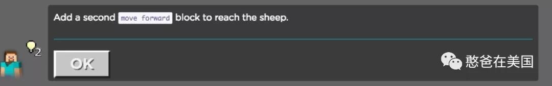 比如我们看第一关,要求孩子把游戏人物往前移动,直到碰到绵羊。